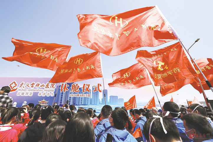 图① 这是2020年4月15日拍摄的武汉雷神山医院休舱仪式。 新华社记者 沈伯韩 摄