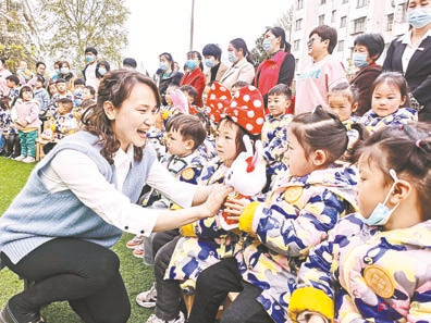 图①“猴子王”与幼儿零距离接触。