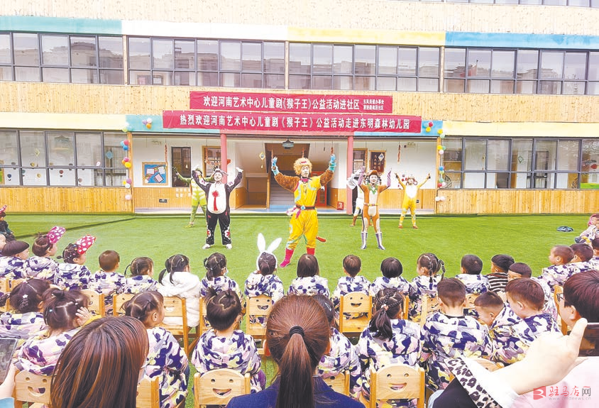 4月6日,由河南艺术中心打造的原创儿童剧《猴子王》走进驻马店市驿城区东风街道办事处前进大道南段东明森林幼儿园,开展公益活动。