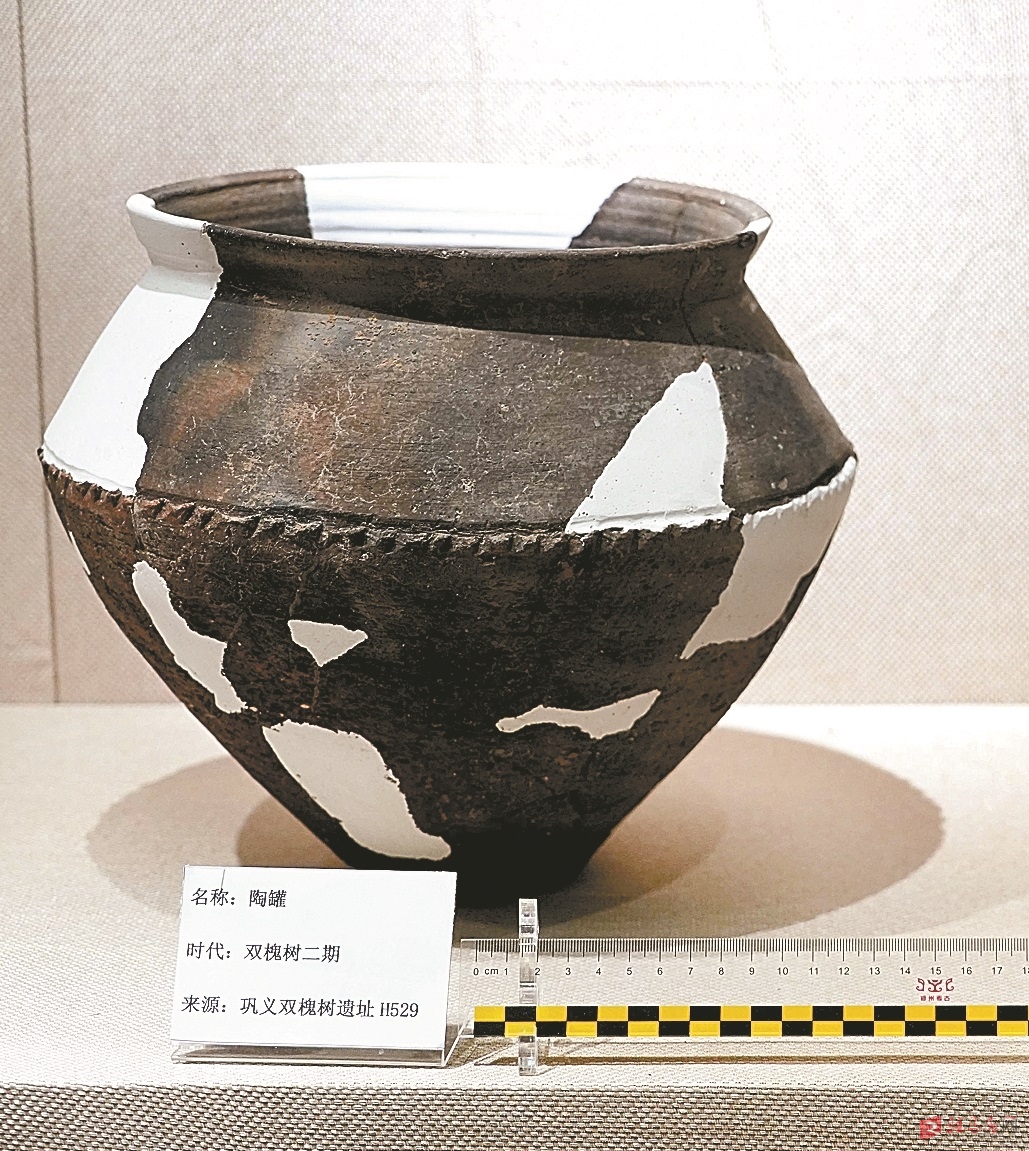 图⑤ 河南省巩义市河洛镇双槐树遗址出土的陶罐(2019年8月27日摄)。