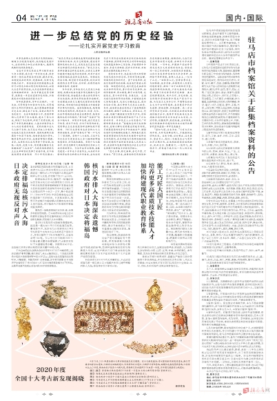 驻马店市档案馆关于征集档案资料的公告