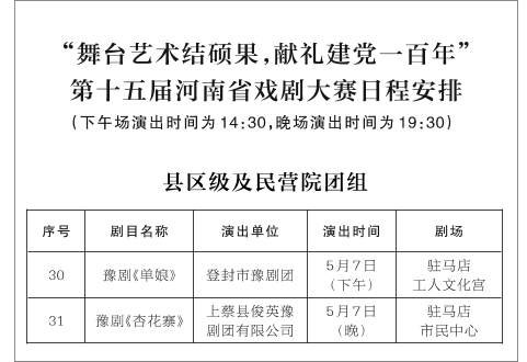 “舞台艺术结硕果,献礼建党一百年” 第十五届河南省戏剧大赛日程安排