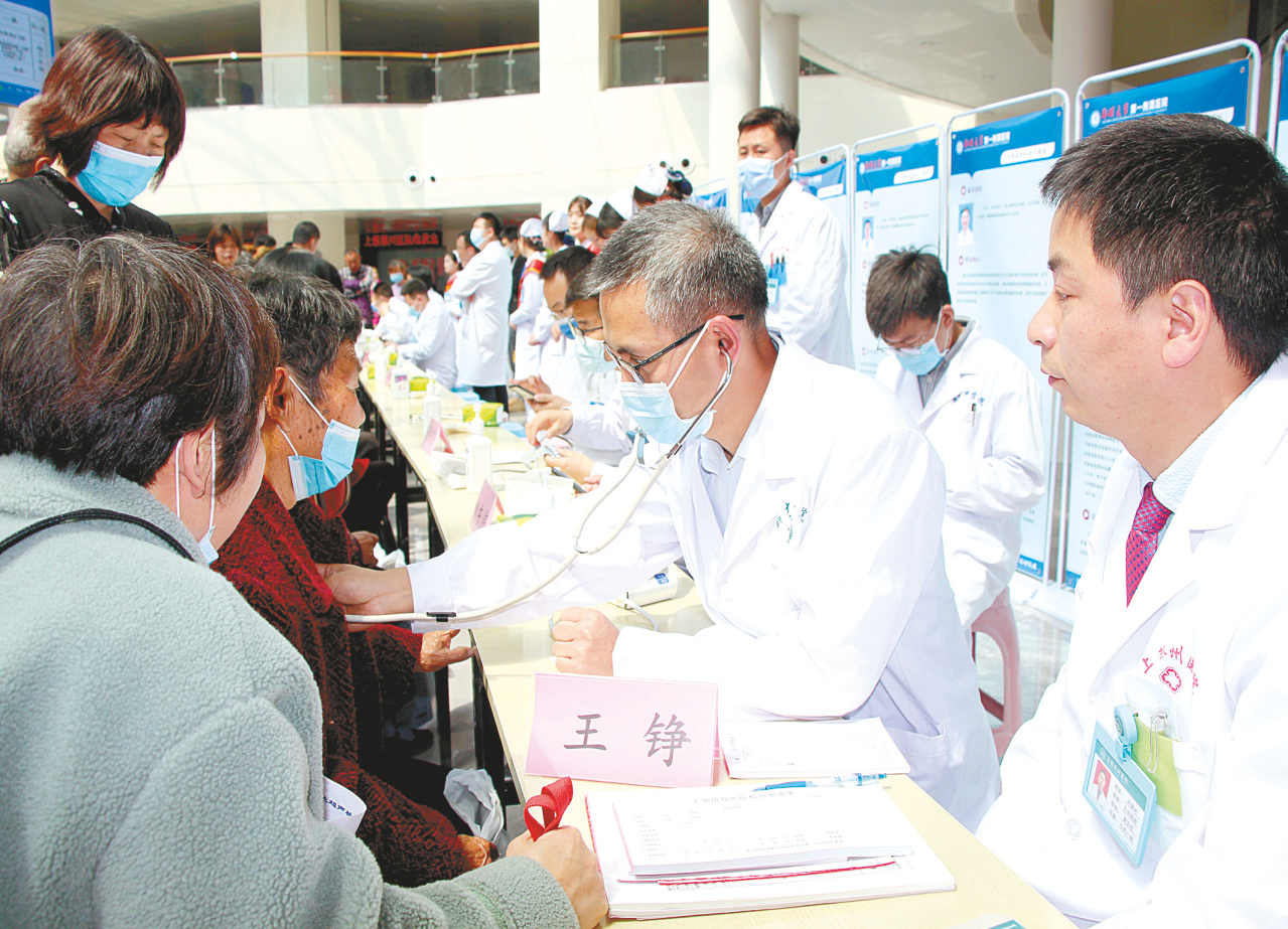近日,上蔡县蔡州医院举行了揭牌仪式和大型义诊活动。图为蔡州医院专家义诊现场。 记者 吴胜军摄