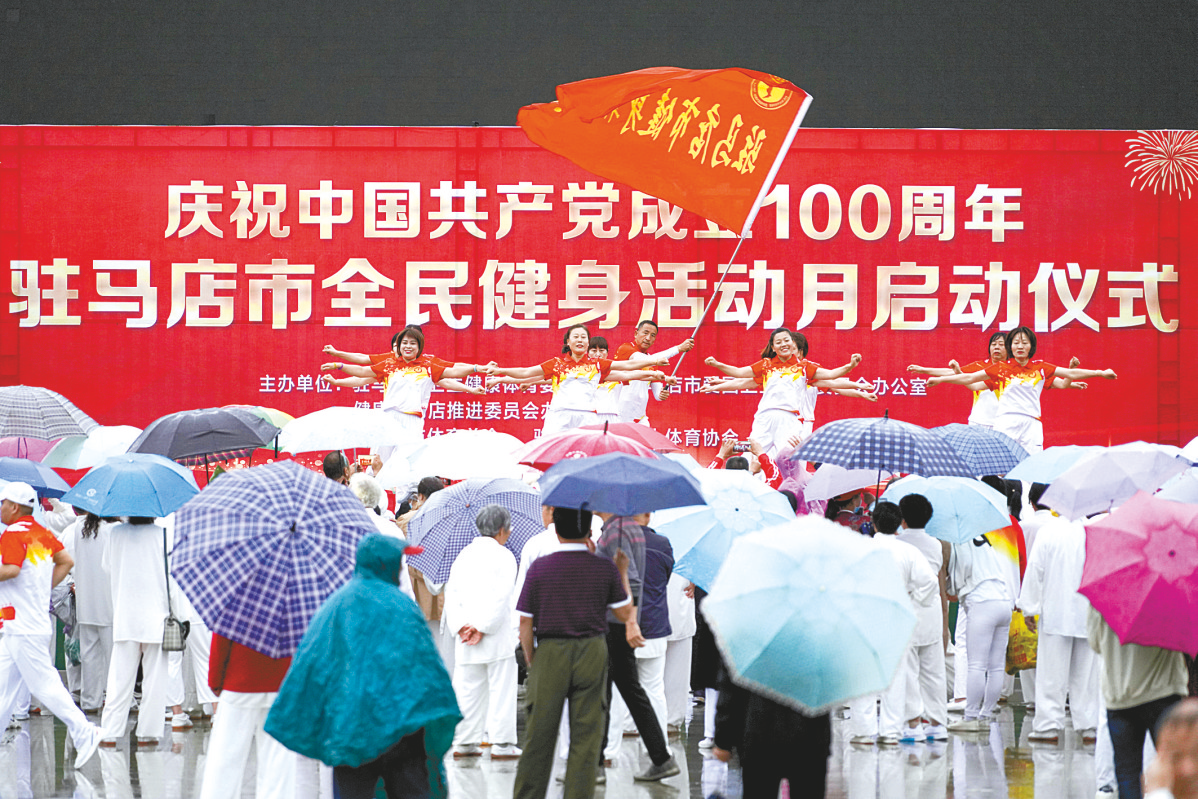 火红的五月中原大地涌动健身潮,火红的五月天中市民参与健身忙。5月15日上午,庆祝中国共产党成立100周年驻马店市全民健身活动月启动仪式举行。市卫生健康体育委员会相关负责人、市爱国卫生运动委员会办公室负责人及市体育总会相关负责人等出席启动仪式。