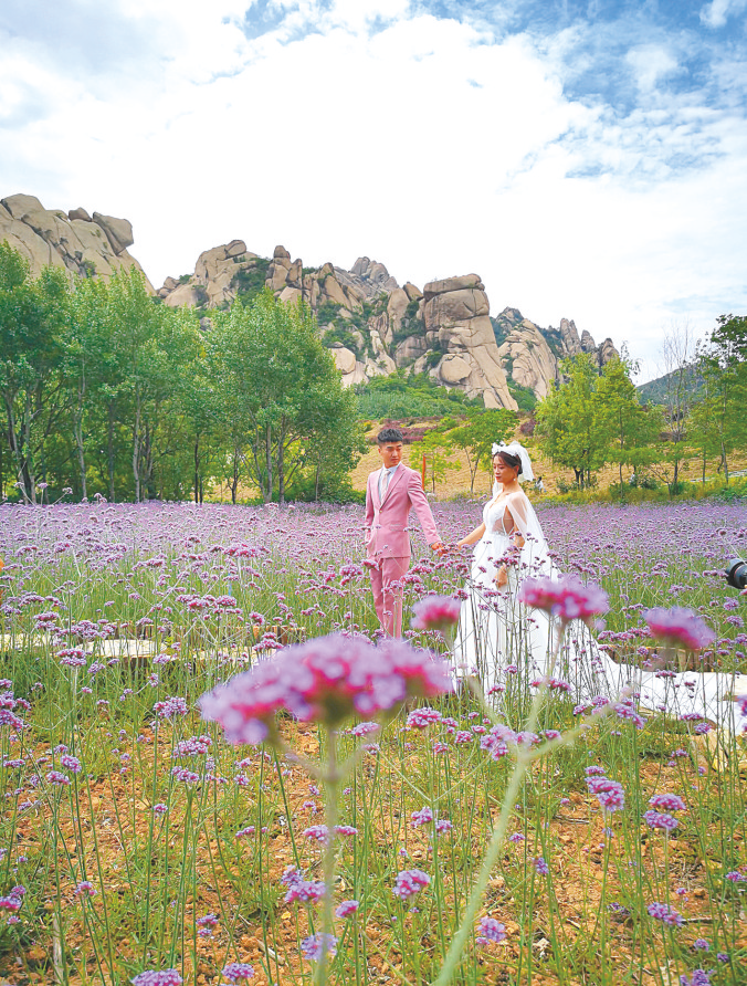 进入5月以来,嵖岈山的马鞭草竞相开放,紫色的马鞭草花海和青山、碧湖、绿树、蓝天一起,勾勒出一幅迷人的风景画,吸引不少游客。