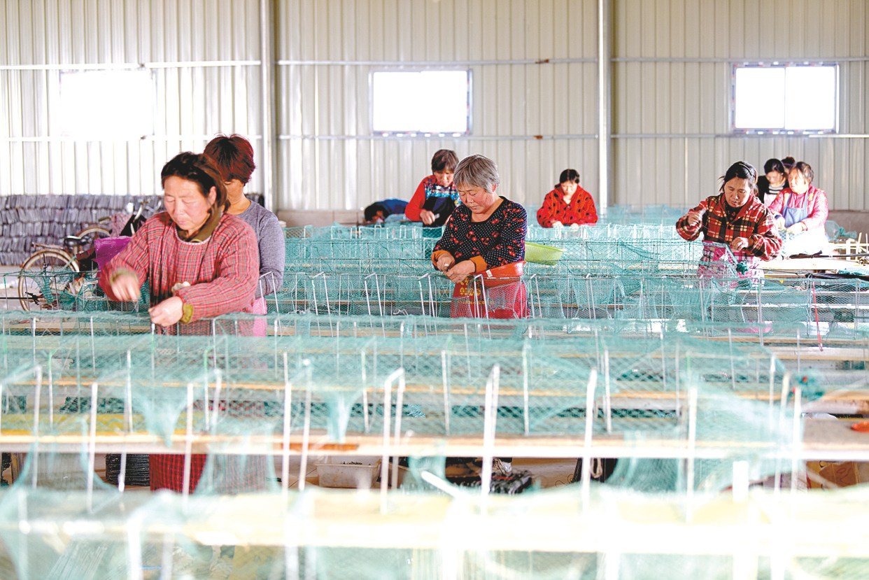 朱里镇乔李村鹏昊渔具厂助力群众编织“幸福梦”。