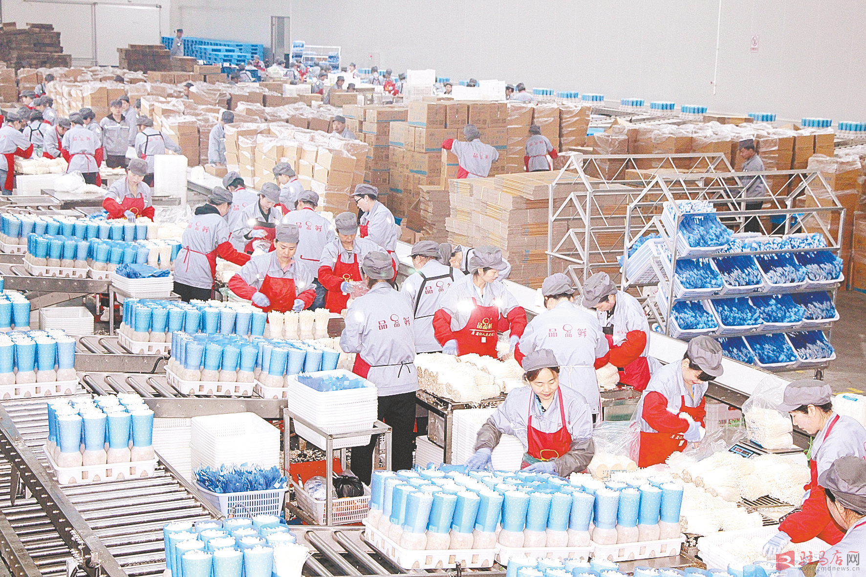 泌阳县河南鲜菇坊生物科技有限公司装箱车间内工人正忙