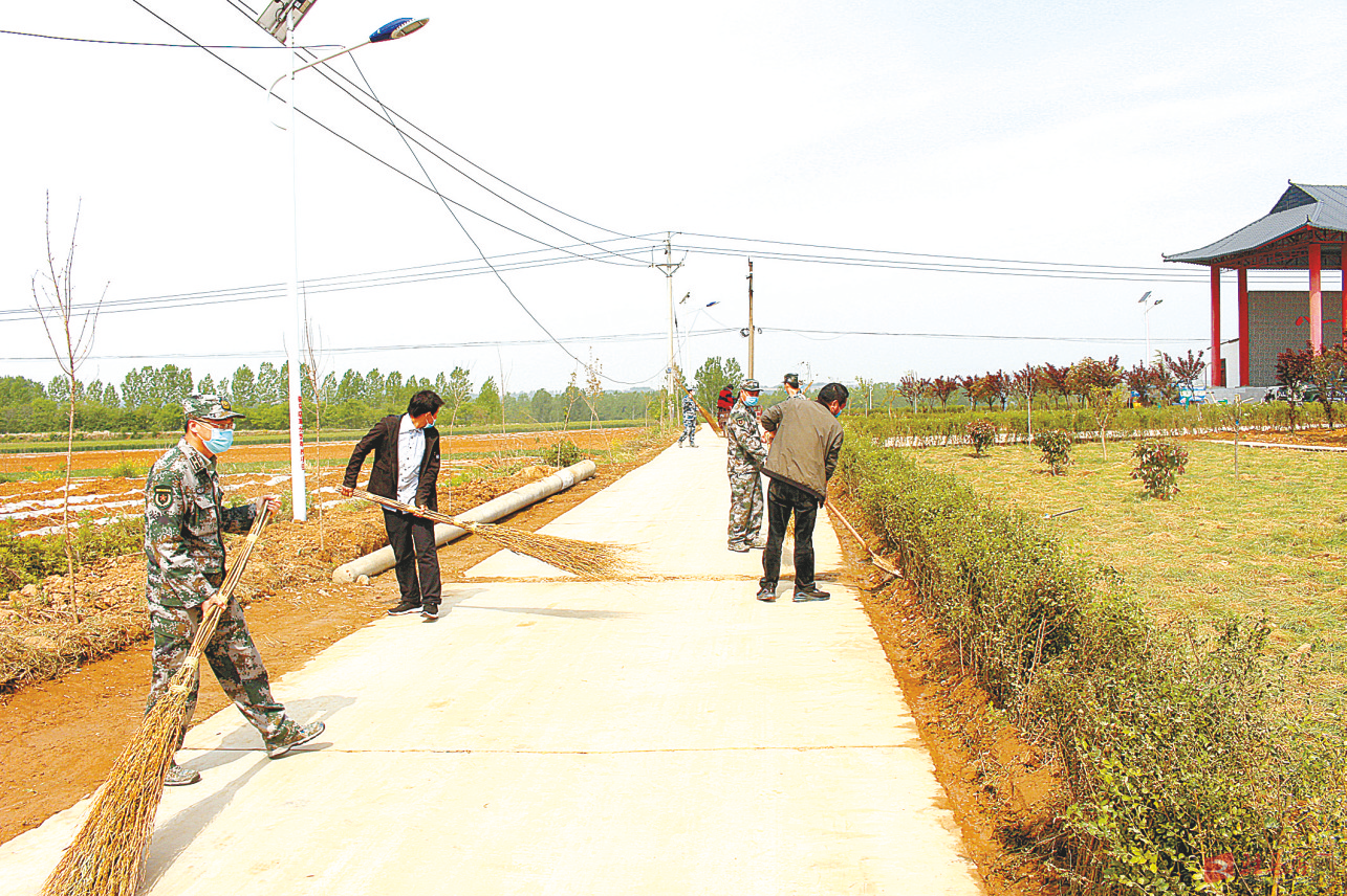驻马店军分区组织民兵到林庄村参加村容村貌环境治理,军地携手建设美丽林庄。