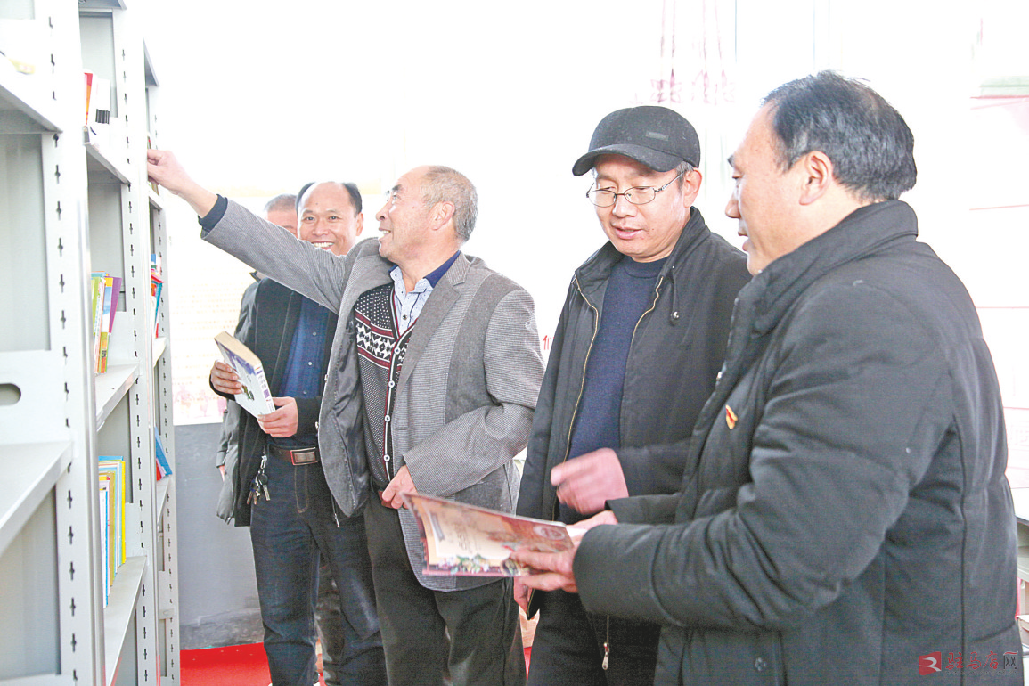 郝坡村两任驻村第一书记查看该院捐赠的图书存阅情况。