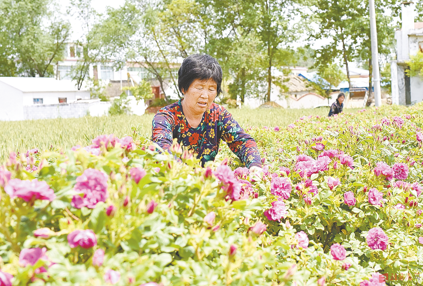连日来,泌阳县双庙街乡付洼村党支部为带动村民致富引进玫瑰花种植产业,种植面积从20亩发展到120亩。 记者 侯伟峰 通讯员 刘艺 摄影报道