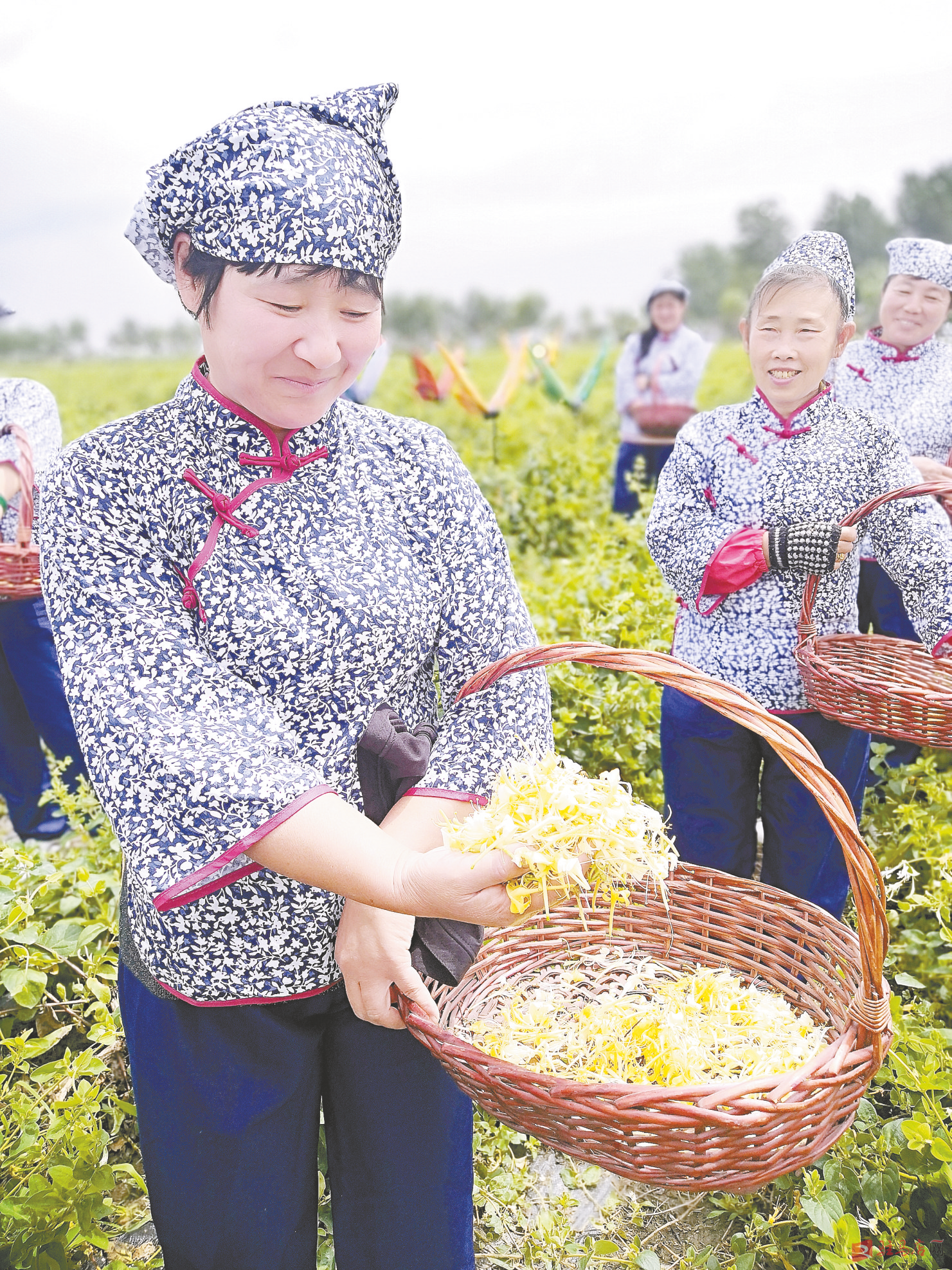 5月26日,确山县刘店镇第一届金银花采摘节暨广场舞大赛在姚楼村开幕,当地村民在金银花产业基地收获着幸福。 记者张新义 通讯员 刘辉摄影报道