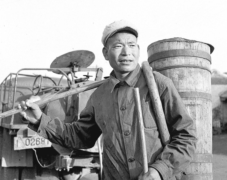 时传祥,1915年9月出生在大胡庄一个贫苦农民家庭。1930年初,他逃荒流落到北京城郊,受生活所迫当了一名掏粪工,在粪霸手下受尽了压迫与欺凌。