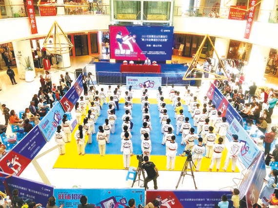 五月是新蔡县的健身月。为进一步营造全民健身浓厚氛围,连日来,新蔡县卫健体委组织开展丰富多彩、便民惠民的全民健身活动,掀起全民健身热潮,为推进体育强省、健康中原建设贡献体育力量,以优异成绩向建党100周年献礼。图为太极拳表演。