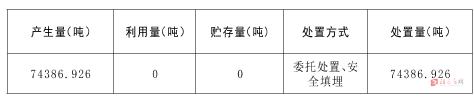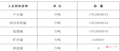 2020年,全市产生一般工业固体废物约178.2804614万吨,综合利用量0万吨,处置量178.2803914万吨,一般工业固体废物贮存量0.00007万吨。