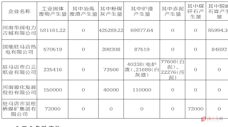 表三 主要工业固废产生企业(前5位)(单位:吨)