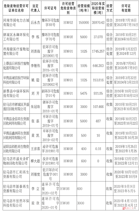 2020年,我市经济开发区分局颁发1家、遂平分局颁发2家、共颁发了3个废矿物油收集证。目前共有处置企业6家,收集单位8家。