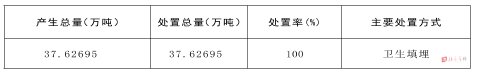 2020年驻马店市中心城区(含农村地区和遂平县)共产生城市生活垃圾37.62695万吨,实行无害化处置37.62695万吨,处置率为100%。采用的处置方式为卫生填埋。