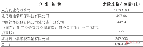表五 主要危险废物产生企业(前5位)