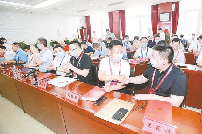 市委副书记、市长朱是西,副市长何晞、贾迎战和嘉宾共同见签。