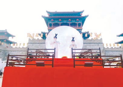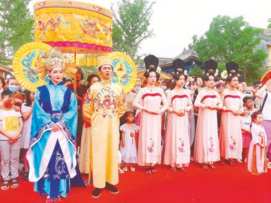图①根据驻马店梁祝文化打造的“化蝶”花船表演每天吸引众多游客。