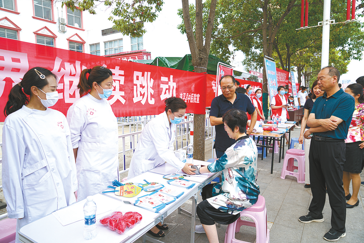日前,在遂平县卫健体委的组织下,县红十字会、县人民医院、中医院等相关单位集中开展以“献血·让世界继续跳动”为主题的无偿献血者日宣传活动,通过发放宣传材料、悬挂横幅等形式,向广大群众宣传献血的相关知识,同时为大家提供免费健康咨询、测量血压等服务。 记者 丁继坡 摄