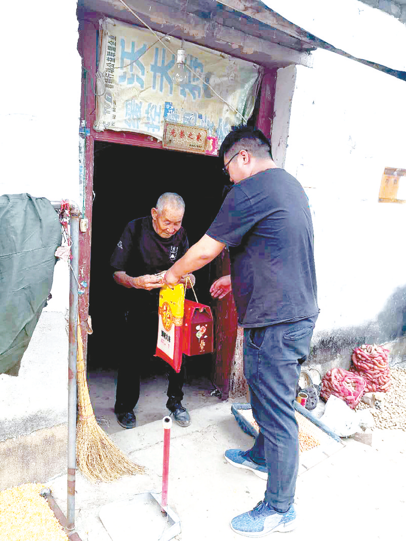 该公司扶贫干部向贫困户赠送生活物资。