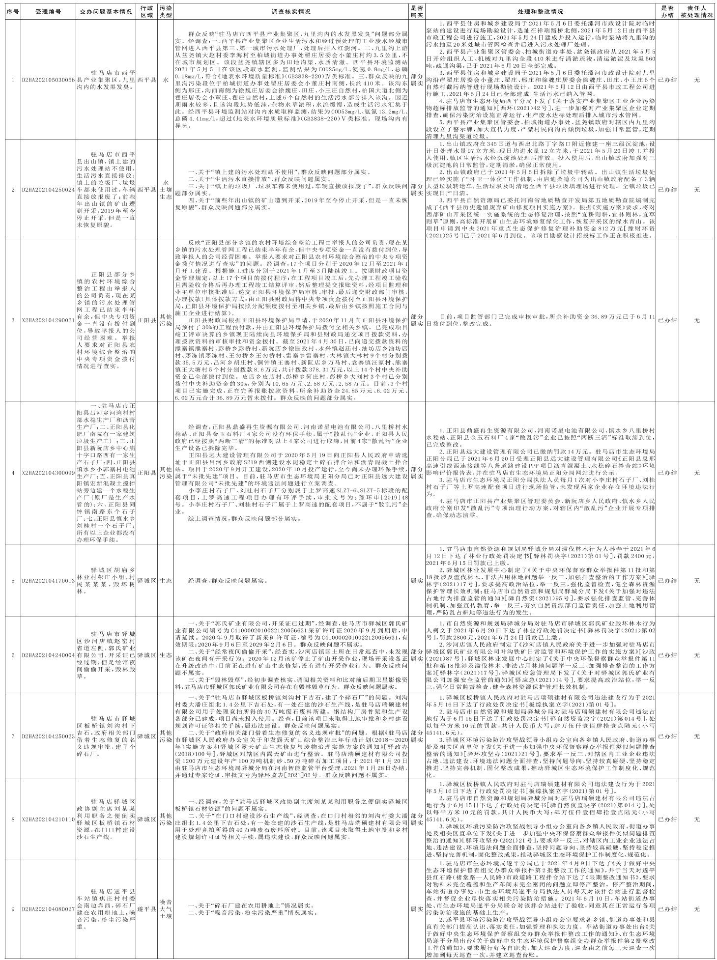2021年中央生态环保督察阶段性办结案件最终整改结果公示