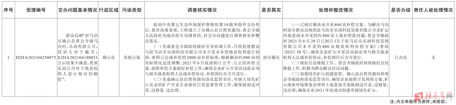 2021年中央生态环保督察阶段性办结案件最终整改结果公示