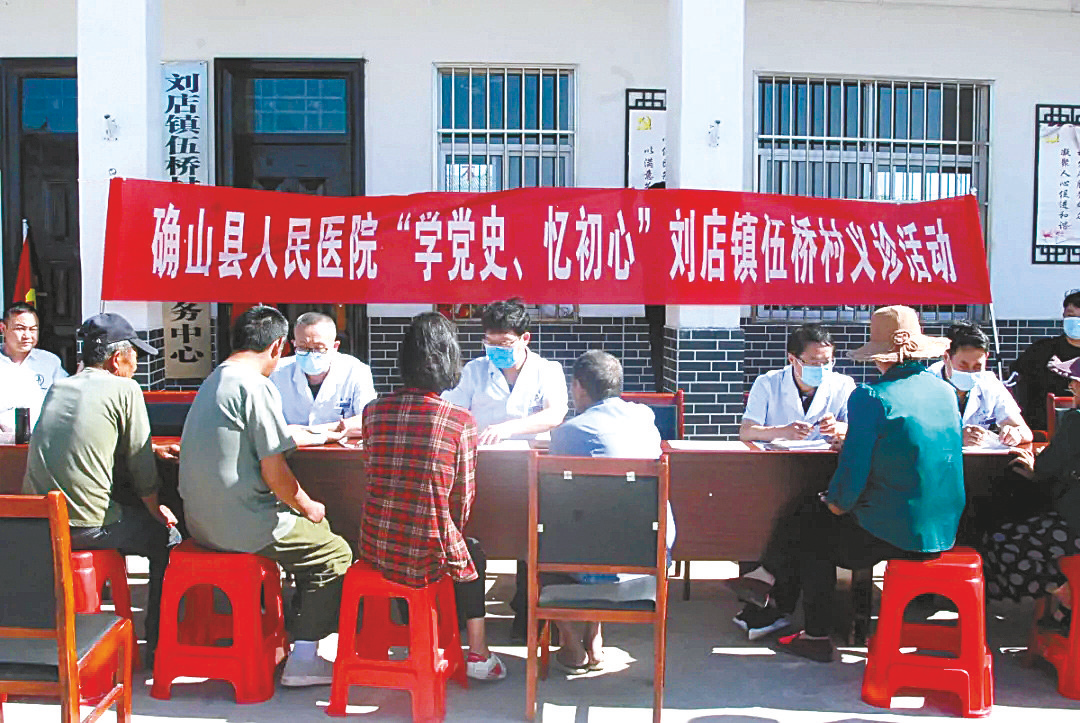 近日,确山县人民医院组织心内科、神经内科、普外科、腰腿疼专科、消化内科、眼科、骨科等专家团来到刘店镇伍桥村开展“我为群众办实事”义诊活动,为群众送上优质服务,推动党史学习教育走深走实。