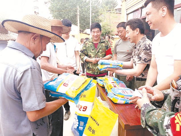 群众凭劳动获得的积分卡在爱心超市领农作物种子。
