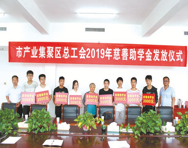 发放慈善助学金。