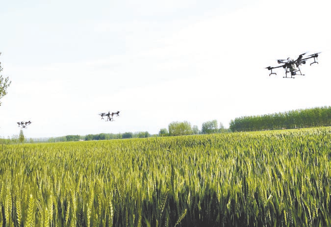 植保无人机进行飞防作业。