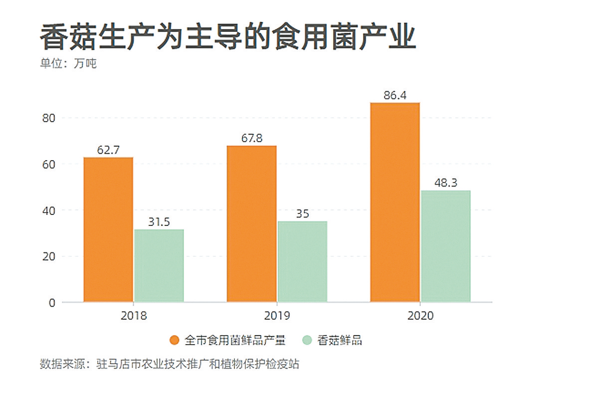 食用菌产业近些年也发展较快,特别是以香菇生产为主导的食用菌产业快速发展。以近三年为例,2018年全市食用菌鲜品产量为62.7万吨,其中香菇鲜品为31.5万吨。2019年食用菌鲜品产量为67.8万吨,其中香菇鲜品的产量为35万吨,2020年鲜品产量为86.4万吨,其中香菇鲜品的产量为48.3万吨,主产品种和总产都有较大幅度提高。