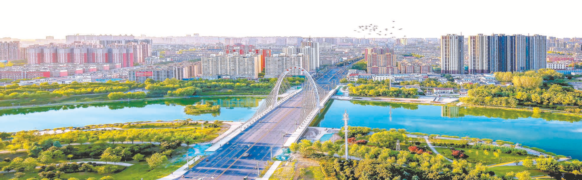 绿色发展筑屏障,水生态文明底色更加鲜亮。市委、市政府把群众对良好生态环境的向往作为奋斗目标,根据市中心城区现有河道水系条件和地形地貌,结合城市总体规划,按照打造“山水园林、生态宜居”,实现“水清岸绿、山水相映、河湖相通、生态美景相依托的美丽驻马店”的目标,规划市中心城区河渠19条,呈八纵九横二渠分布状态,水系按功能分为“七带五连四湿地”。