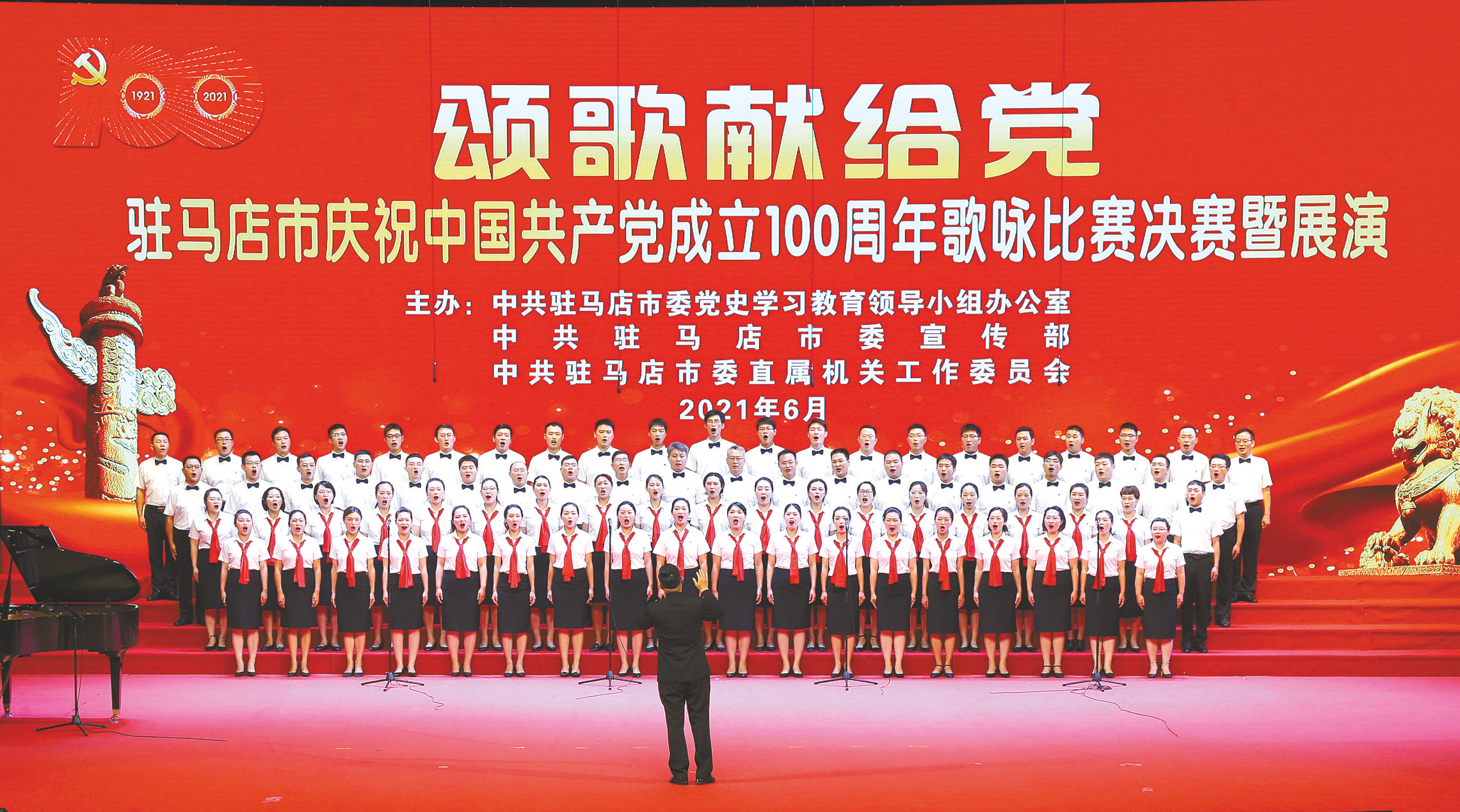 驻马店市庆祝中国共产党成立100周年“颂歌献给党”歌咏比赛决赛暨展演活动——市领导以普通党员身份参加歌咏比赛。