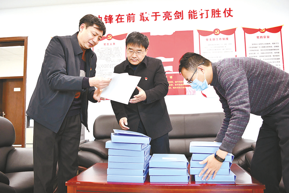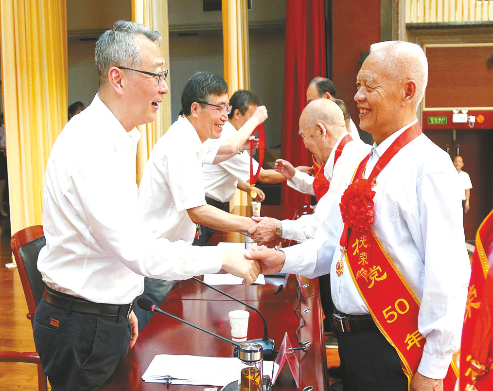 市委副书记王振利为党龄达到50年老党员颁发“光荣在党50年”纪念章。