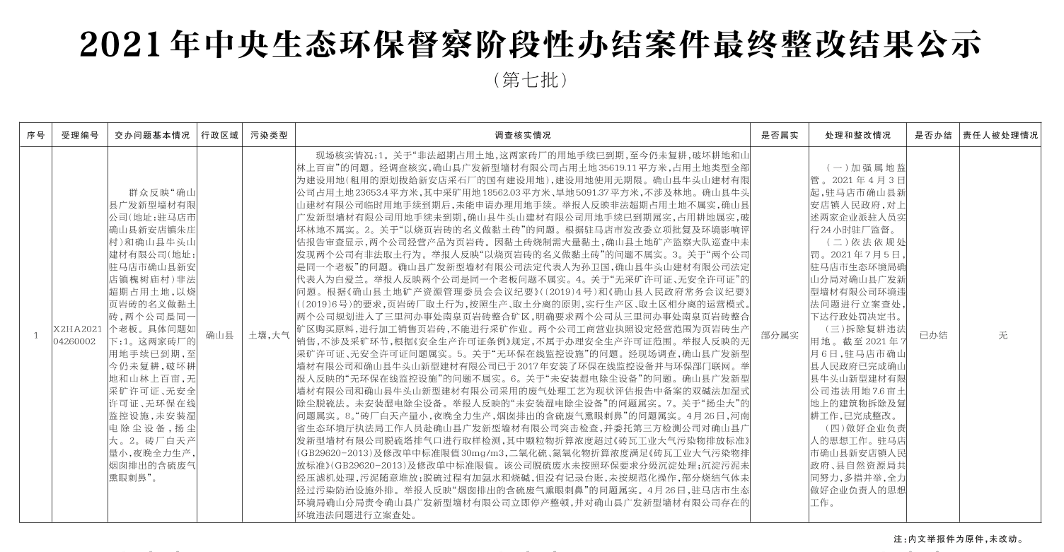 2021年中央生态环保督察阶段性办结案件最终整改结果公示