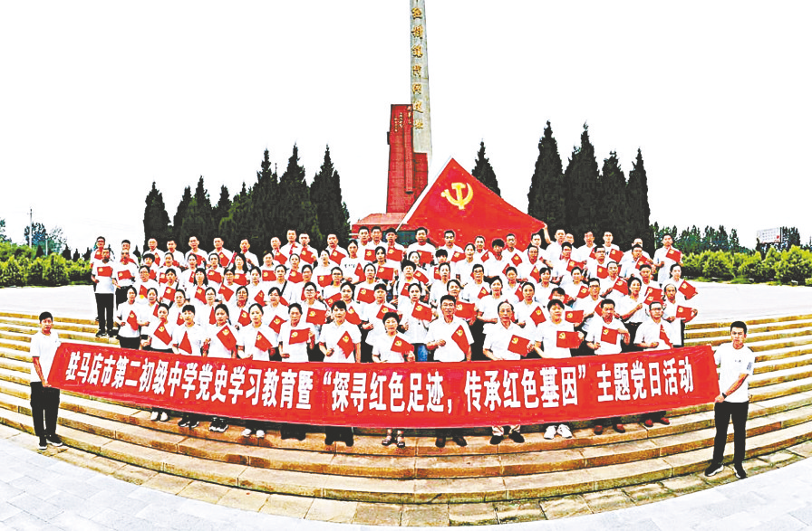 为积极推进党史学习教育深入开展,近日,驻马店市第二初级中学组织全体党员和入党积极分子到南阳市桐柏县、内乡县等红色革命教育基地,开展“探寻红色足迹传承红色基因”主题党日活动。
