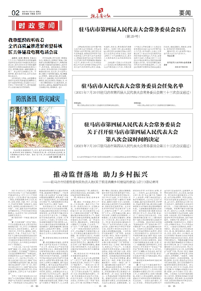 驻马店市第四届人民代表大会常务委员会关于召开驻马店市第四届人民代表大会 第八次会议时间的决定