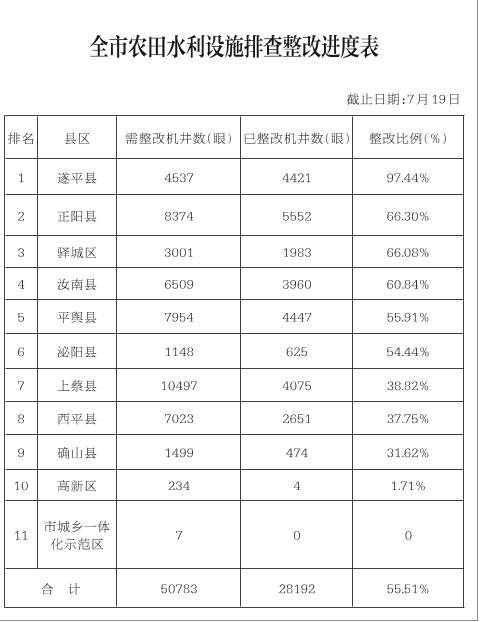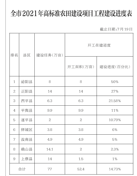 关于全市高标准农田建设和农田水利设施排查整改进展情况的通报