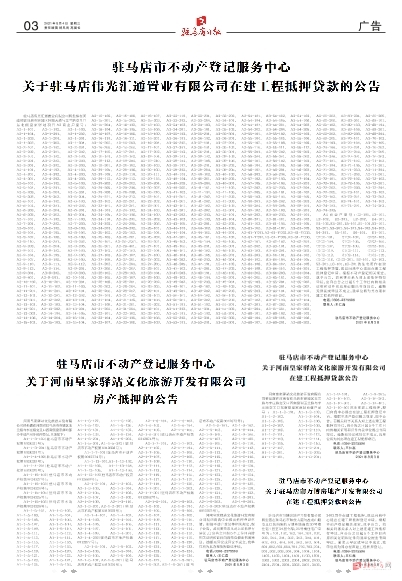 驻马店市不动产登记服务中心 关于河南皇家驿站文化旅游开发有限公司 在建工程抵押贷款公告