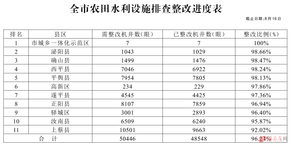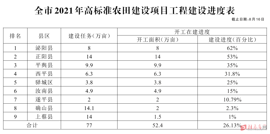 关于全市高标准农田建设和农田水利设施排查整改进展情况的通报