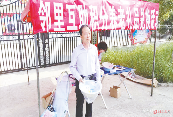 近日,汝南县金铺镇村民拿着互助养老积分卡兑换了礼品。