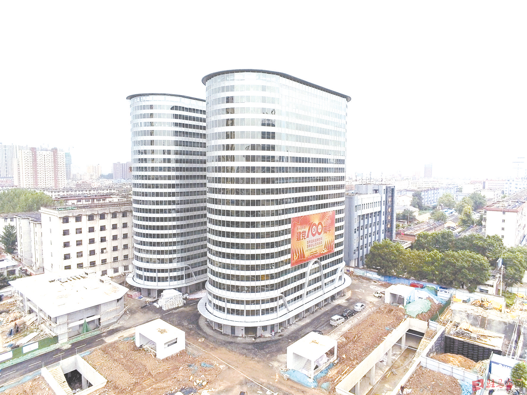 近日,无人机拍下造型别致、外墙装饰考究的智能停车场主体建筑。