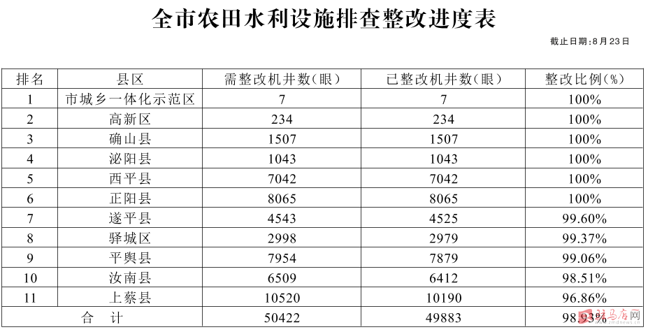 关于全市高标准农田建设和农田水利设施排查整改进展情况的通报
