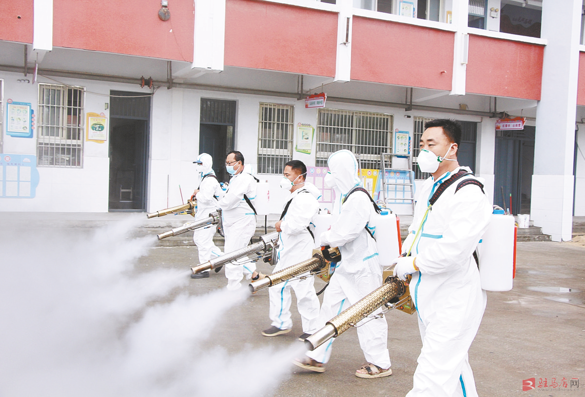 按照全市教育系统严格执行常态化疫情防 控工作要求,8月30日上午,驻马店市蛟龙救援队 志愿者使用背负式弥雾机等设备,严格按照技术 规范,对市区第二十一小学、第二小学校园内进 行地毯式防疫消杀,确保秋季平安开学。 记者 吴胜军 摄