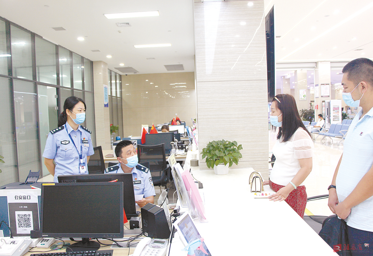 自疫情防控工作开展以来,驻马店市公安局出入境管理部门通过微信、微博等方式及时发布疫情防控期间出入境管理政策调整和问题解答,引导群众尽量减少出入境活动,并向社会公开24小时咨询服务电话,及时解答群众咨询,同时对因紧急商务、处理突发事件等急需办理出入境证件的申请人,经审核后开通“绿色通道”及时办理。图为9月2日,在市民中心驻马店市公安局出入境管理窗口,值班民警向市民讲解疫情防控期间办理出入境证件的相关政策。