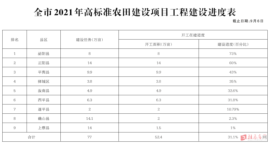 关于全市高标准农田建设进展情况的通报