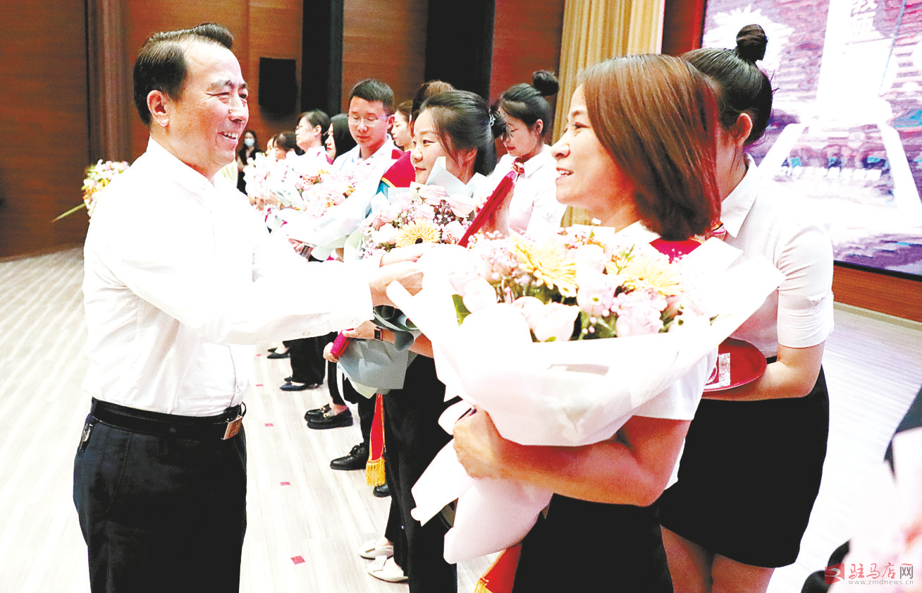师道尊严润物无声,言传身教如沐春风。9月8日上午,驻马店市第三十六小学礼堂内掌声雷动,2021年“天中最美教师“”天中名师”颁奖典礼在这里举行。市委副书记、市长李跃勇,市委常委、宣传部部长戚存杰,市人大常委会副主任王志华,市政府副市长宋庆林,市政协副主席张银良出席典礼并为“天中最美教师”“天中名师”颁奖。颁奖典礼现场,30名新入职的教师代表进行了入职宣誓。
