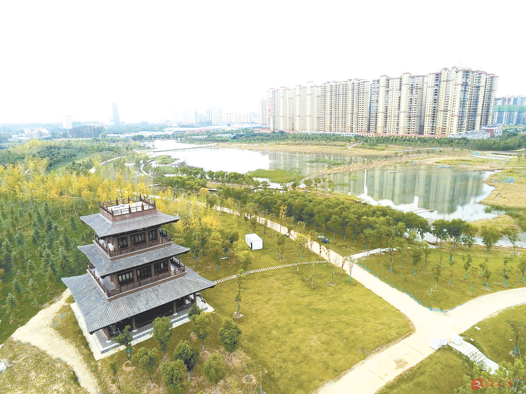 近日,记者在市人民公园清河湖东岸看到一座仿古建筑矗立于绿树丛中,格外引人注目。